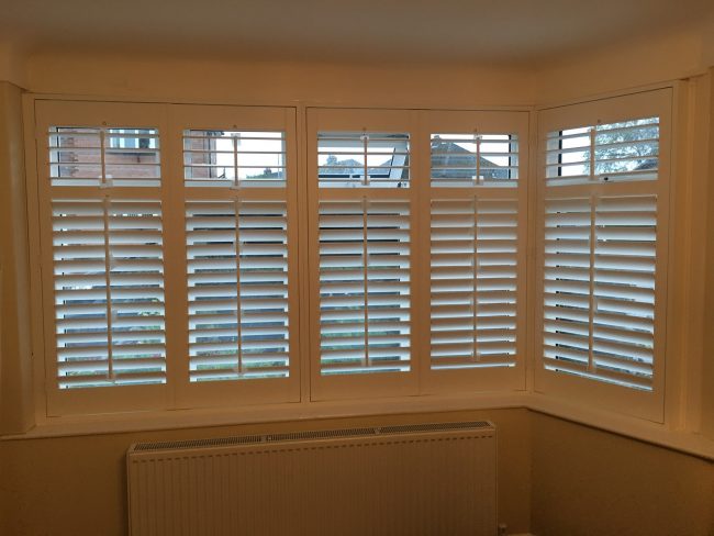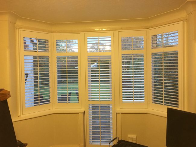 A very wide box bay window fitted with shutters featuring a concealed split, for excellent flexibly in terms of light 🔆 & privacy 🔒