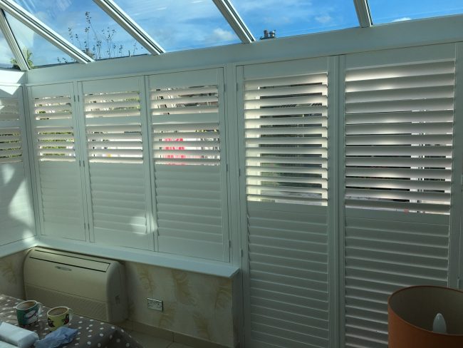 The before & after of this conservatory we fitted with shutters today in Great Sankey, Warrington. Plantation shutters are great for keeping heat in, or out, of your conservatory ☀️