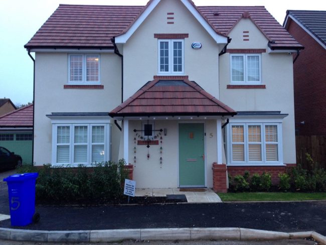 We fitted almost every window in this new build with shutters, including two recessed box bay windows, patio doors & several standard windows. (P.S. 💚 the colour of the door!)