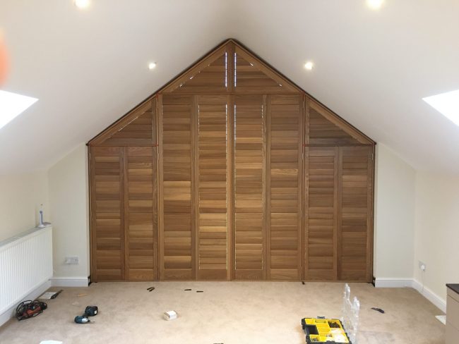 One of todays installations in Macclesfield – A Large Custom, Made-To-Measure, Apex Shutter in our Premium Elmwood Range. These images don’t do the shutters justice, in person they look even more incredible! 😀