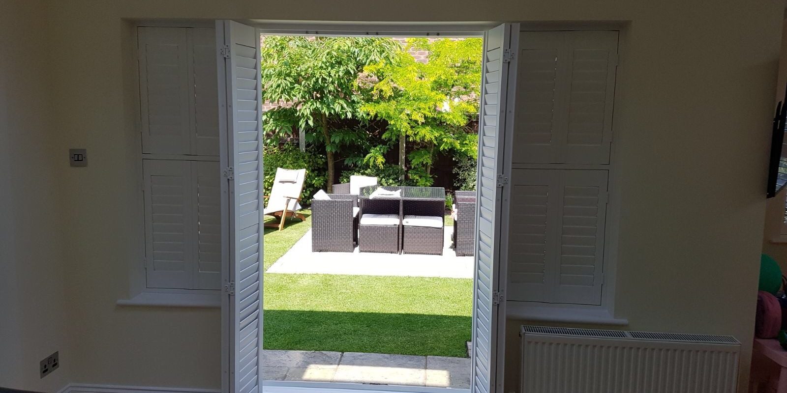 The images of this installation from a couple of days ago in Warrington are making us miss the sun. The garden looks so inviting with the patio door shutters wide open!