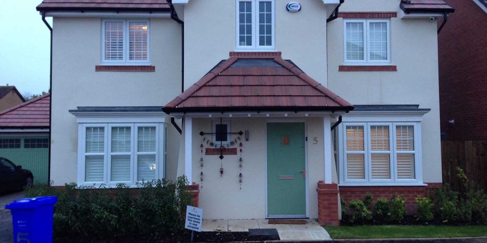 We fitted almost every window in this new build with shutters, including two recessed box bay windows, patio doors & several standard windows. (P.S. π the colour of the door!)